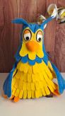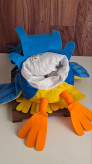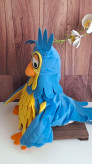 این خروس بامزه با ترکیب رنگ شادِ آبی و زرد، حس شادی و سرزندگی را بهخوبی منتقل میکند. طراحی لایهلایهی پرها از جنس نمد یا پارچهی نرم، به آن حالتی فانتزی و دوستداشتنی داده و چشمهای درشتش، کنجکاوی و شیطنت کودکانهای را نشان میدهد.