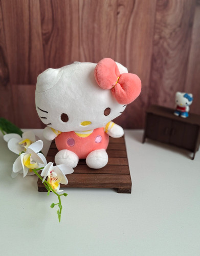 عروسک هلو کیتی مخملی پاپیون صورتی