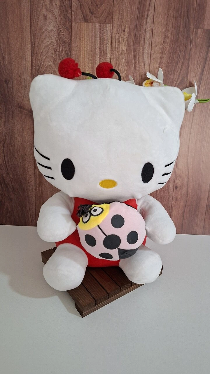 عروسک هلو کیتی مخملی پاپیون صورتی